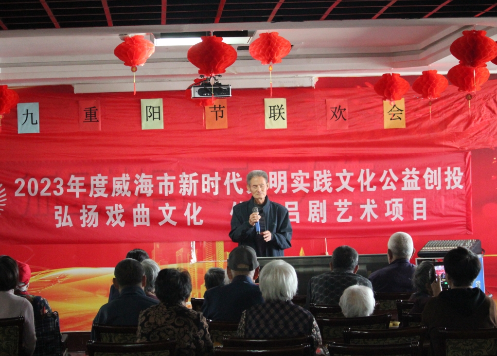 九九重陽節,濃濃敬老情。日前,由威海市文化和旅游局、乳山市文化和旅游局主辦,乳山市呂劇協會承辦的“2023年度威海市新時代文明實踐文化公益創投’弘揚戲曲文化 傳承呂劇藝術‘項目走進敬老院,為老人表演了一場精彩的文化“視聽盛宴”,給老人們送上節日的問候和美好的祝愿。