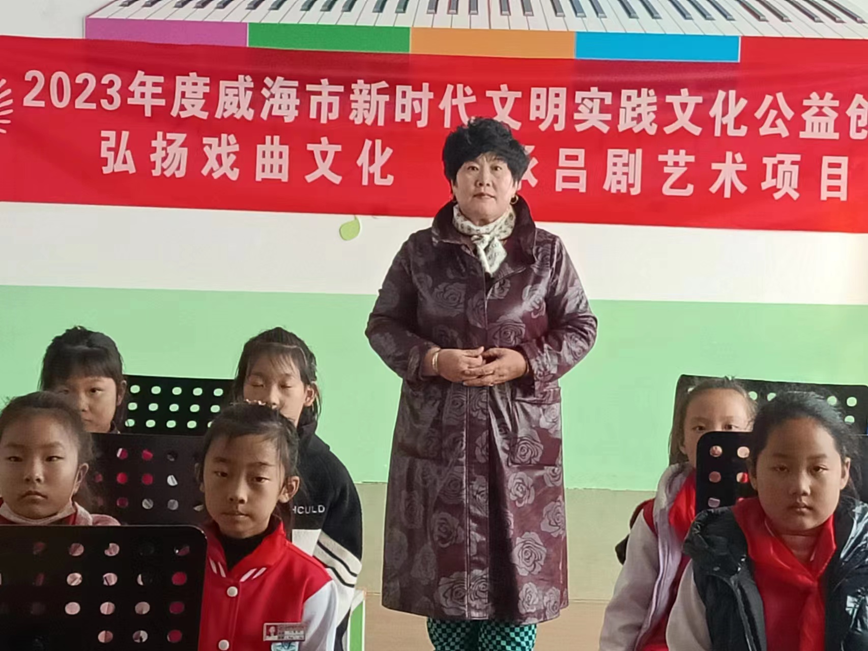 2023年11月15日在海陽所鎮中心學校,乳山市呂劇協會繼續推進由威海市文化和旅游局、乳山市文化和旅游局主辦,乳山市呂劇協會承辦的“2023年度威海市新時代文明實踐文化公益創投“弘揚戲曲文化 傳承呂劇藝術”項目的相關活動。